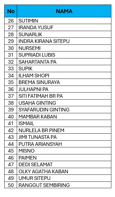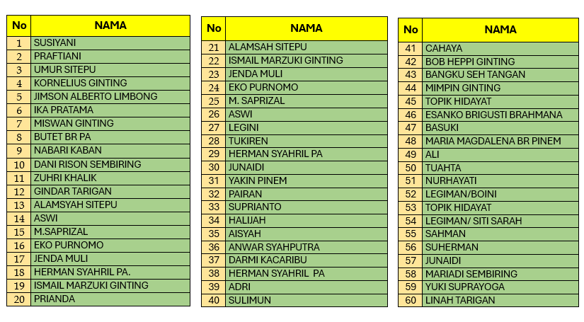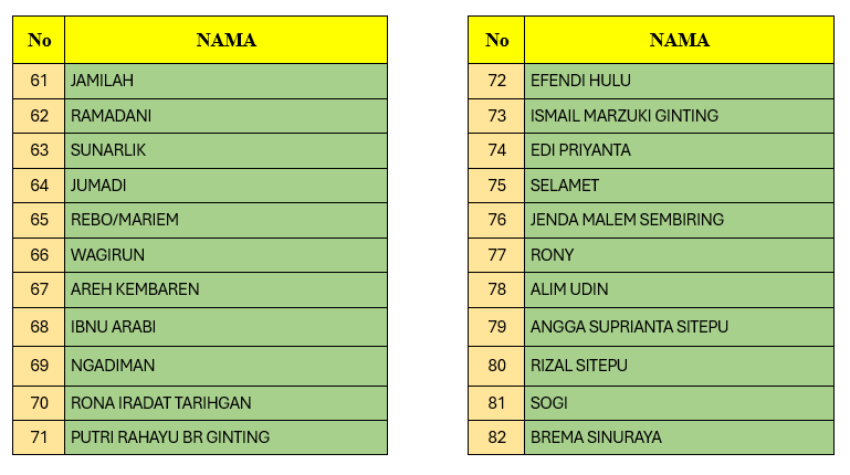 Untuk melihat daftar nama yang telah mendaftarkan pembuatan Kartu Keluarga Tahun 2025 bisa Klik Disini